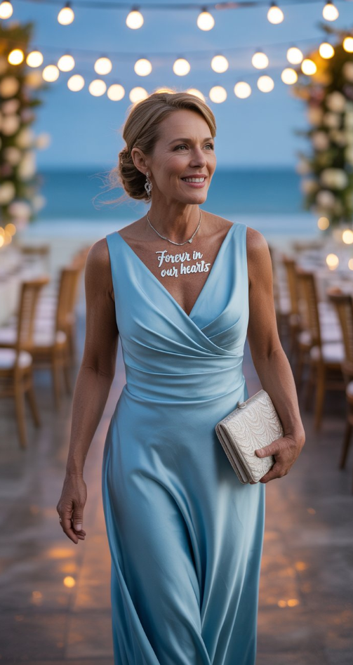 Mermaid Blue Satin Mother Of The Bride/ Groom Dresses Formal Long Evening Dress