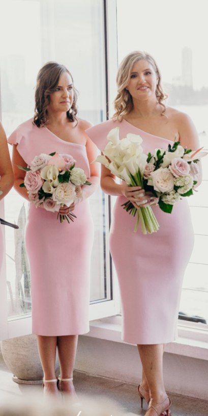 Sheath One Shoulder Pink Bridesmaid Dresses, Short Bridesmaid Dresses