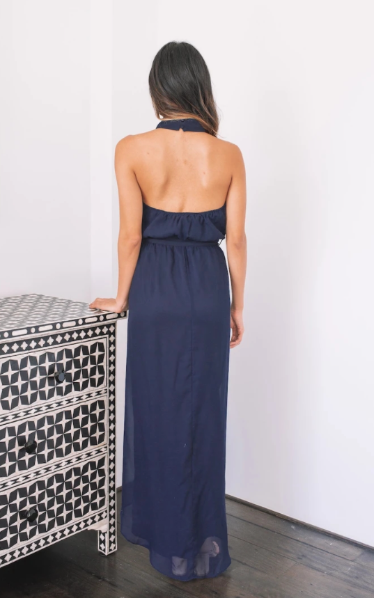 Chic Halter Navy Blue Chiffon Bridesmaid Dresses