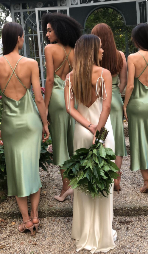 Sheath Cowl Neck Silk Satin Tea Length Bridesmaid Dresses