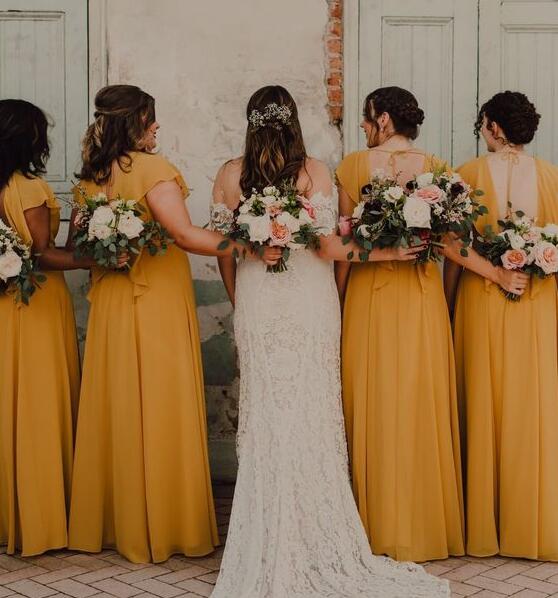 A Line Chiffon Yellow Long Bridesmaid Dress