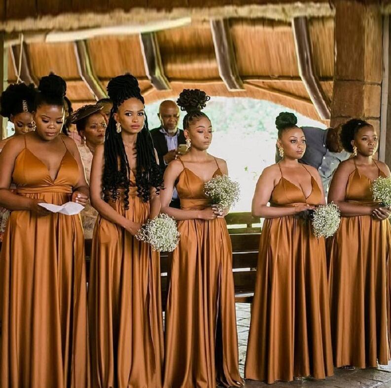 Spaghetti Straps Open Back V Neck Bridesmaid Dress for Wedding
