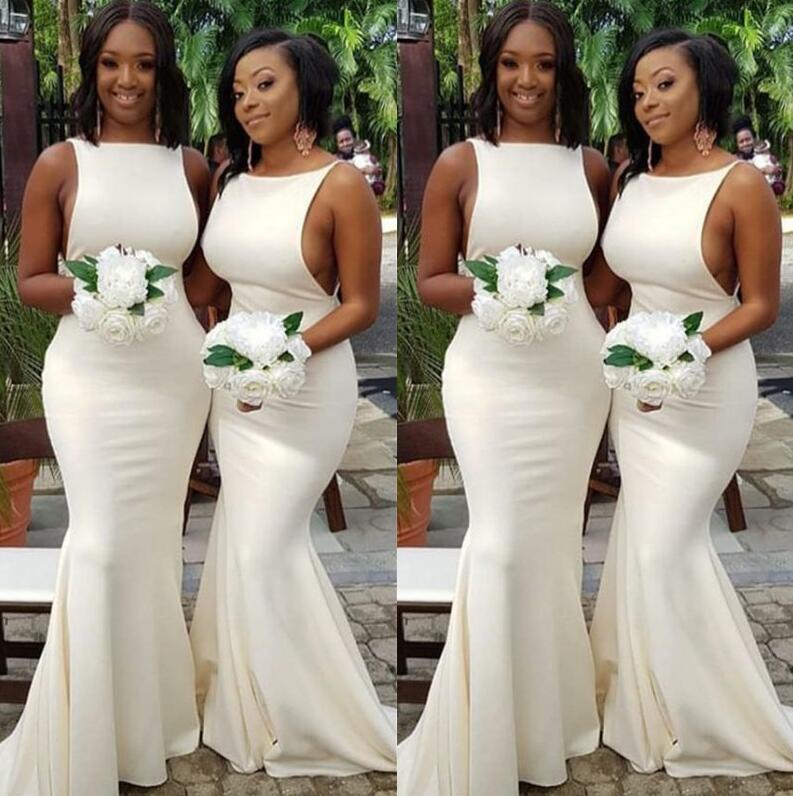 Simple Sleeveless Ivory Stain Bridesmaid Dresses
