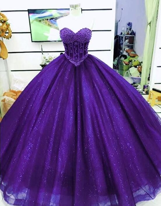 Sweetheart Sleeveless Glitter Ball Gown Prom Dresses