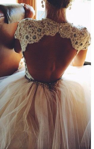 Shedress Pretty Backless lace beading Tulle short wedding dress low back style