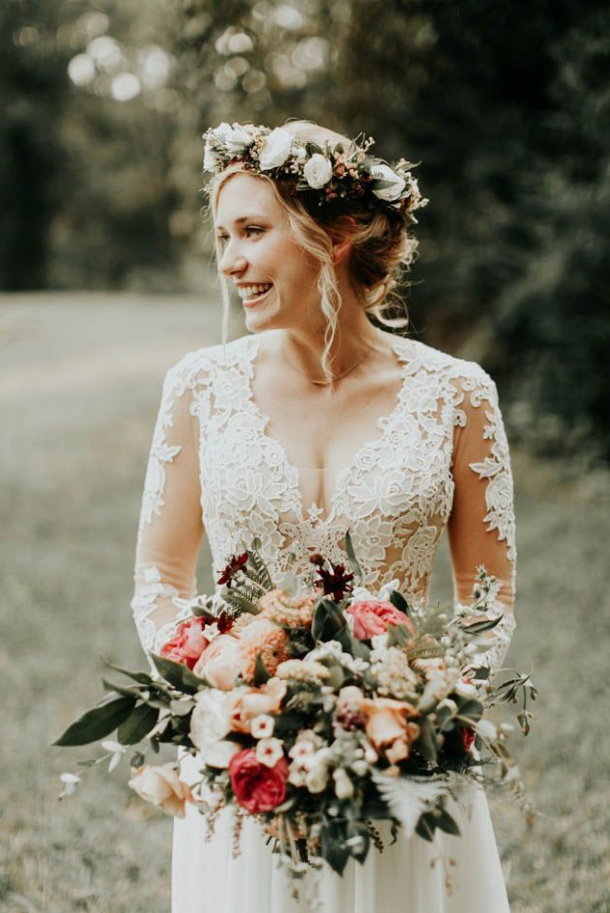 Long Sleeves V Neck Wedding Dresses Bridal Gown