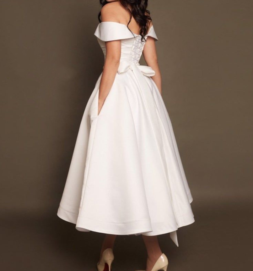 Off Shoulder Tea Length Plus Size Short Wedding Dress