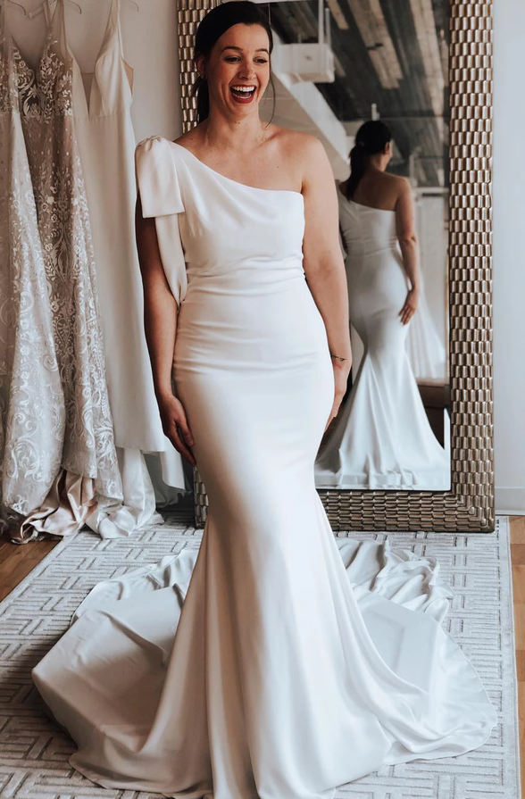 Mermaid Ivory Chiffon Sweep Train Wedding Dresses