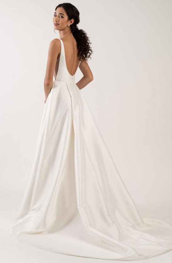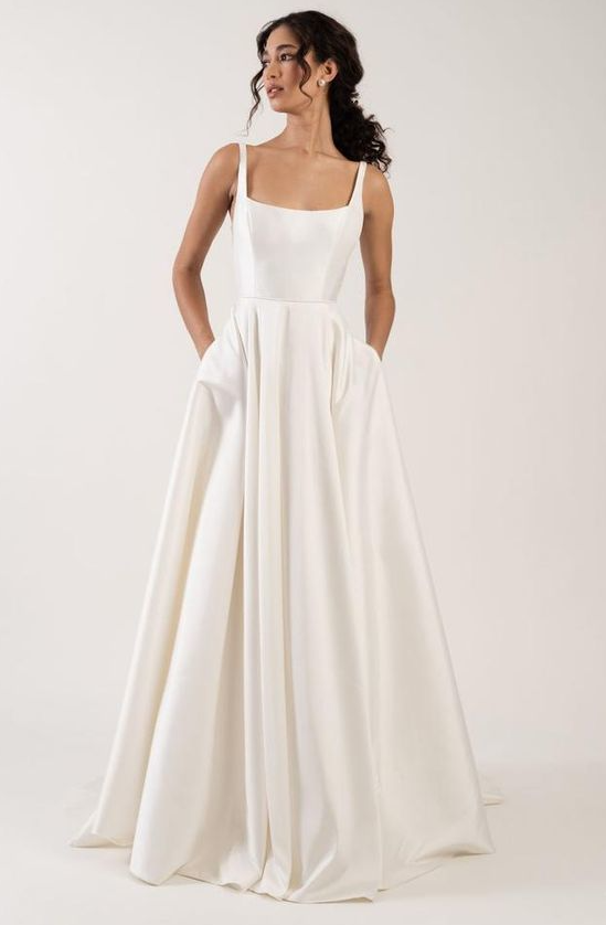 Simple Mermaid Square Neck Open Back Wedding Dresses