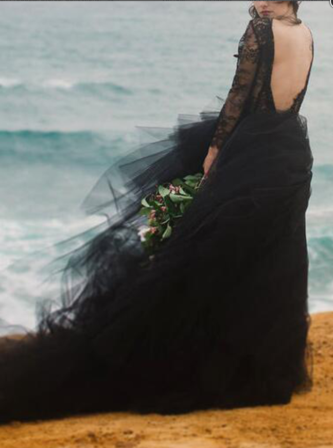 Beauty Long Sleeve Black Wedding Dresses,Lace Wedding Dresses