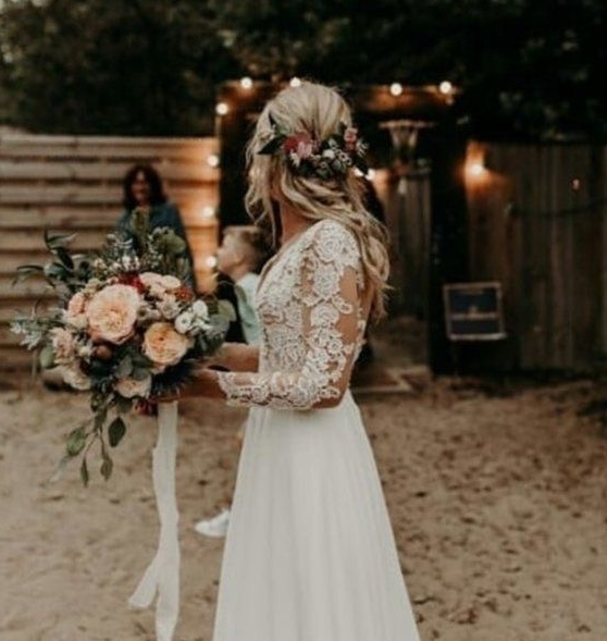 Beauty V Neck Lace Wedding Dresses with Sleeves