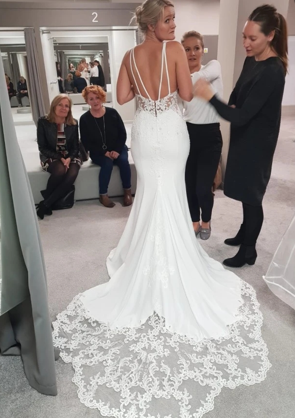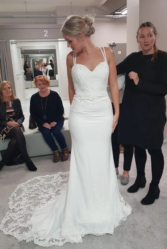 Simple Mermaid Sweetheart Lace Wedding Dresses with Train