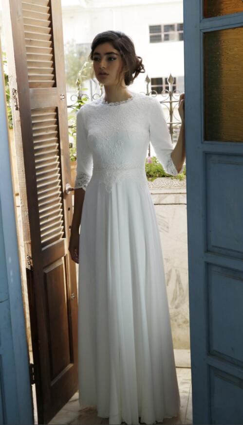 Vintage A Line Half Sleeve Chiffon Prom Dress Wedding Dress