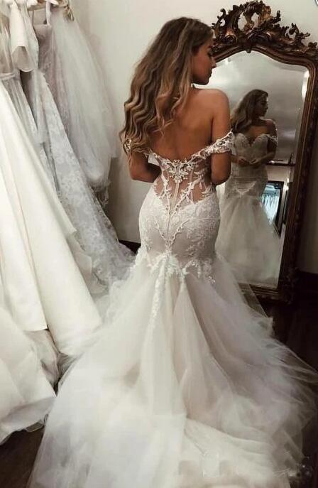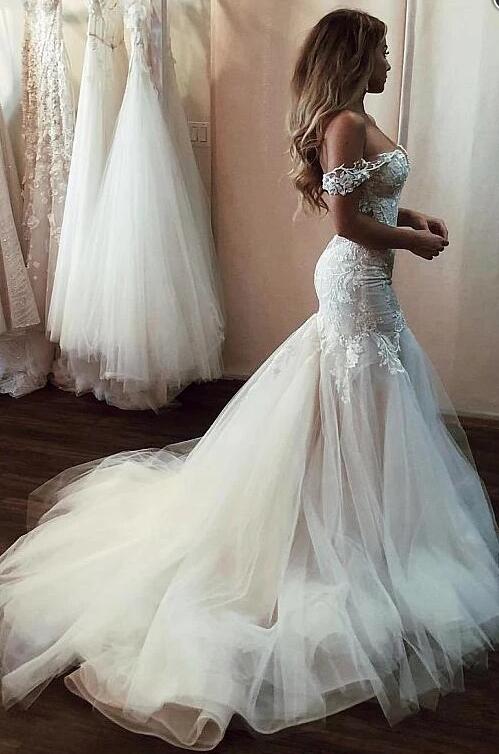 Off Shoulder Mermaid Tulle Wedding Dress with Lace