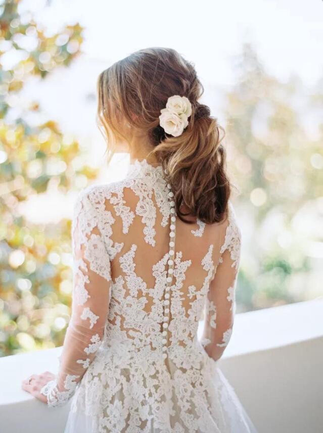 A-Line High Neck Garden Wedding Dresses With Lace Appliques
