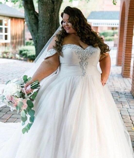 Off the Shoulder Plus Size Chiffon Wedding Dresses Bridal Gowns With Beading