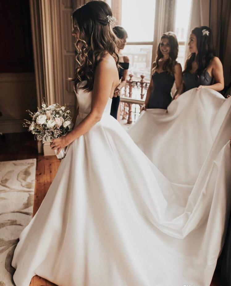Simple Mermaid Satin Beach Wedding Dresses With Pocket