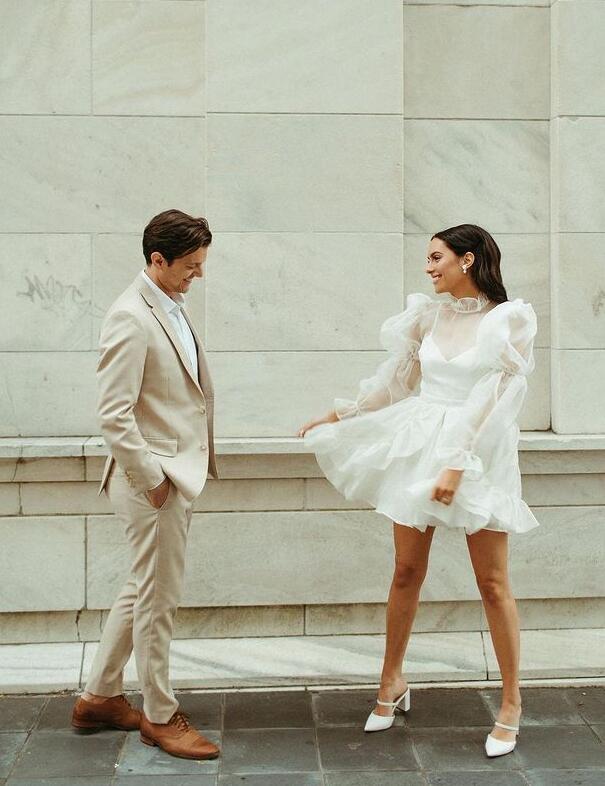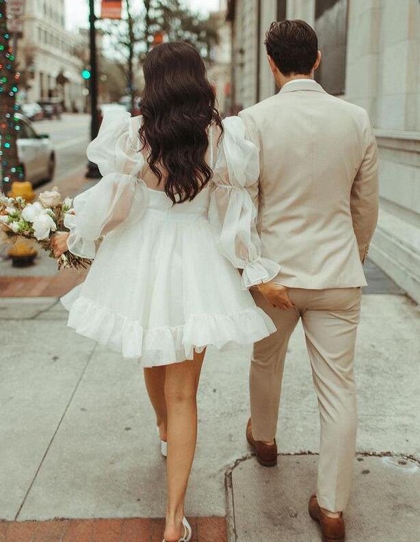 Princess Long Sleeve Short Wedding Dresses