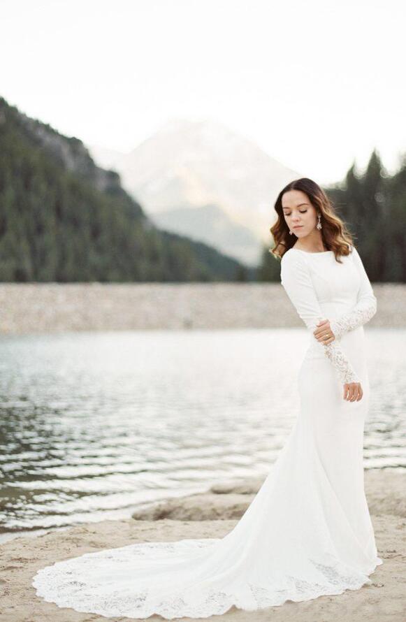 Simple Mermaid Ivory Modest Wedding Dresses With Long Sleeves