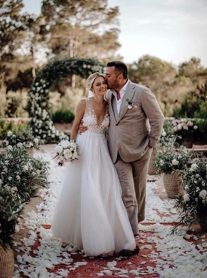 A-Line Sleeveless V-Neck Country Boho Beach Wedding Dress With Lace Applique