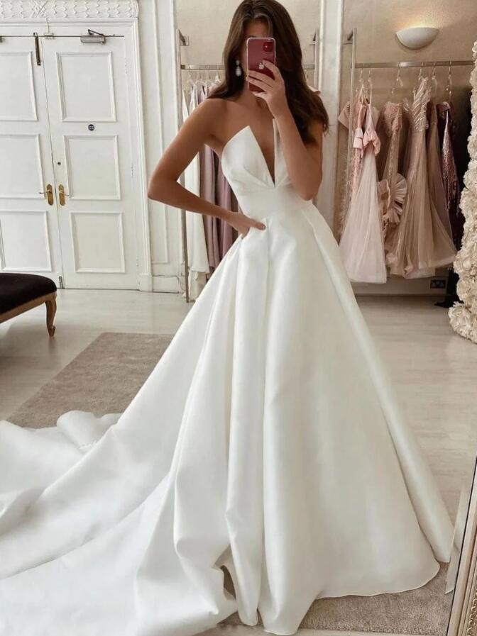 Simple mermaid white satin long prom dresses
