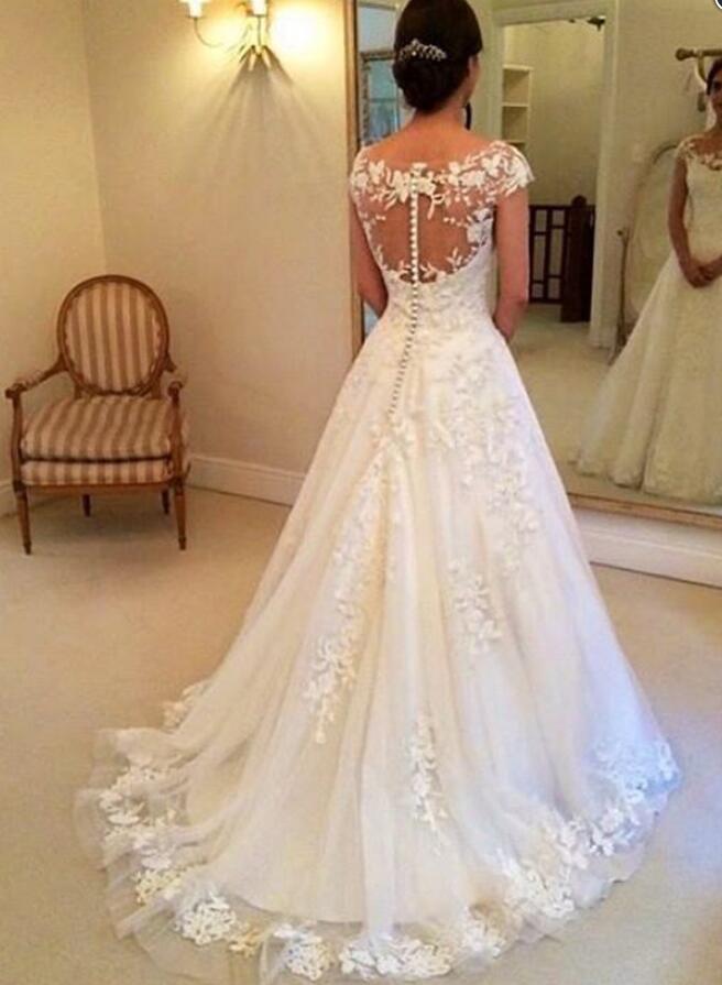Mermaid A Line Scoop Neck Lace Wedding Dresses