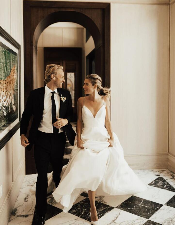 Spaghetti Straps Ivory V-Neck Satin Wedding Dresses