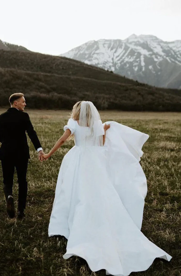 Beautiful Ball Gown Square Neck White Satin Mermaid Wedding Dresses