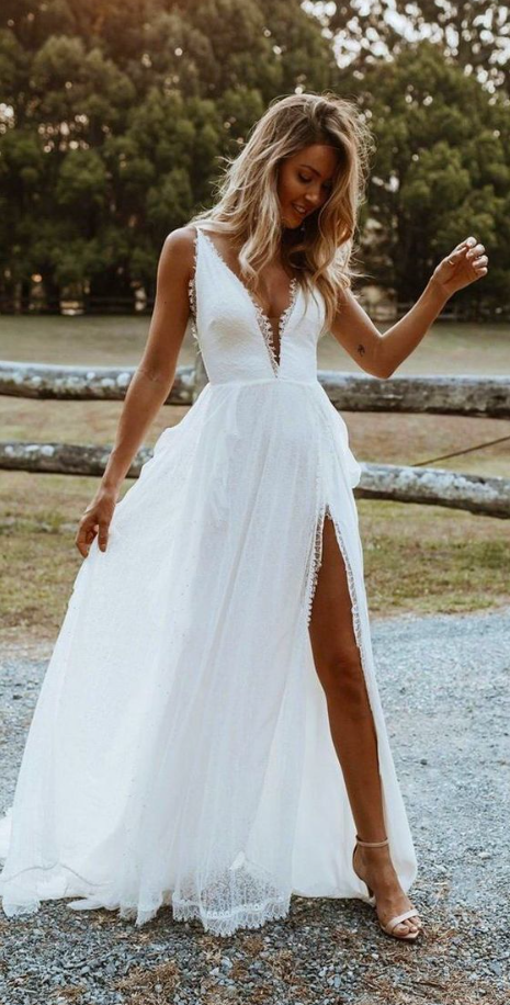 Chic A Line V Neck Beach Wedding Dresses Bridal Gowns