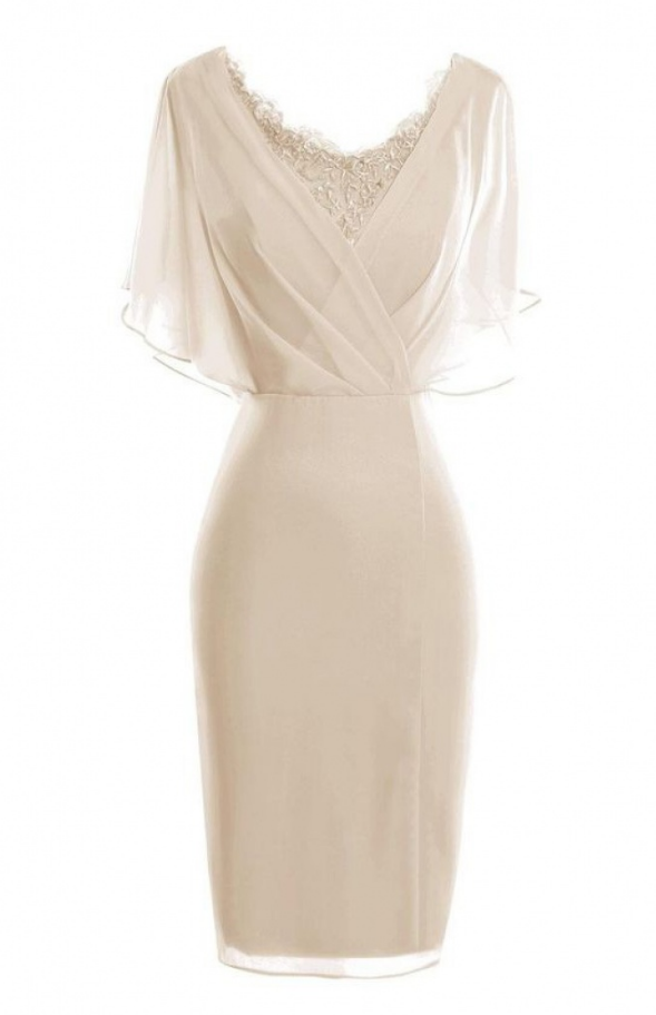 Light Champagne Chiffon Mother of The Bride Dress with Lace