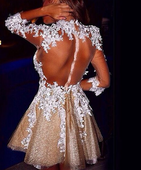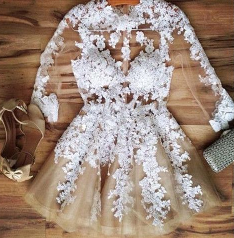 Sexy Long Sleeves Sheer Short Prom Dress With Lace