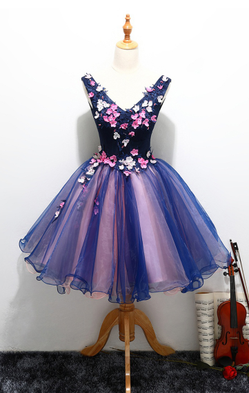 Organza A-Line V Neck Homecoming Dresses With Appliques
