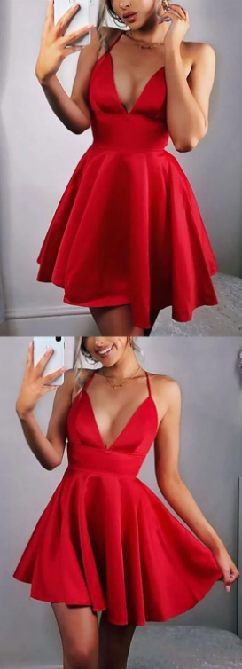 Cute Deep v neck short prom dress, sexy homecoming dress
