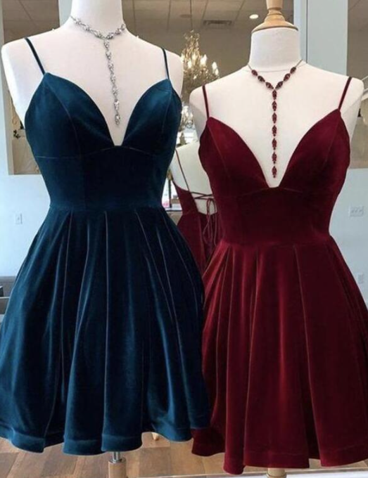A-line Spaghetti Straps Velvet Short Homecoming Dresses