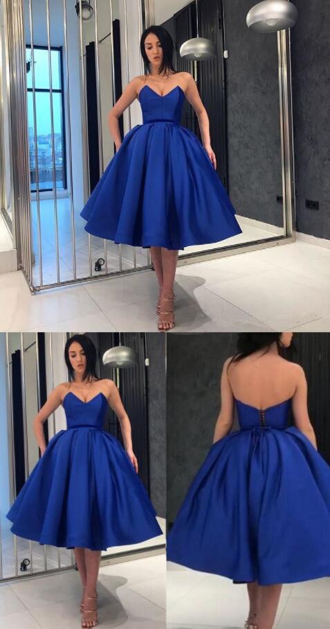 Vintage Royal Blue Knee Length Stain Homecoming Dresses