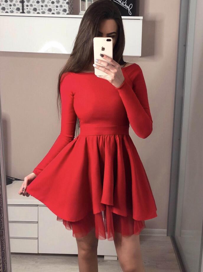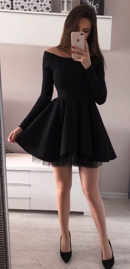 Off the Shoulder Long Sleeve Black Homecoming Dresses