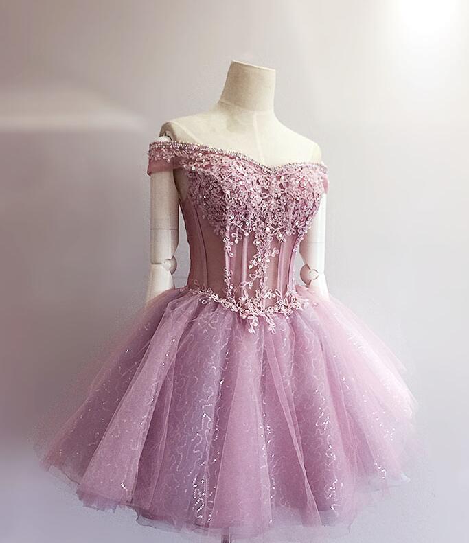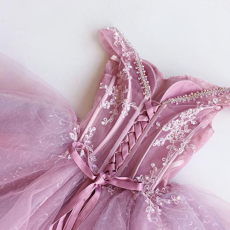 Gorgeous Pink Tulle Short Homecoming Dresses With Lace