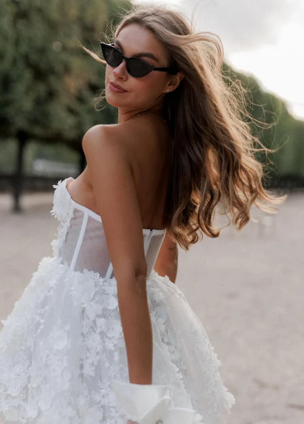 Cute Strapless Corset 3D Floral Tulle Short Homecoming Dresses