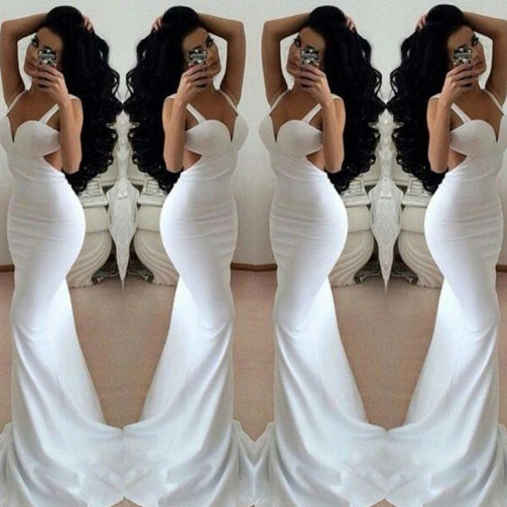 Sexy A Line Long Trumpet/Mermaid Straps Chiffon Prom Dresses