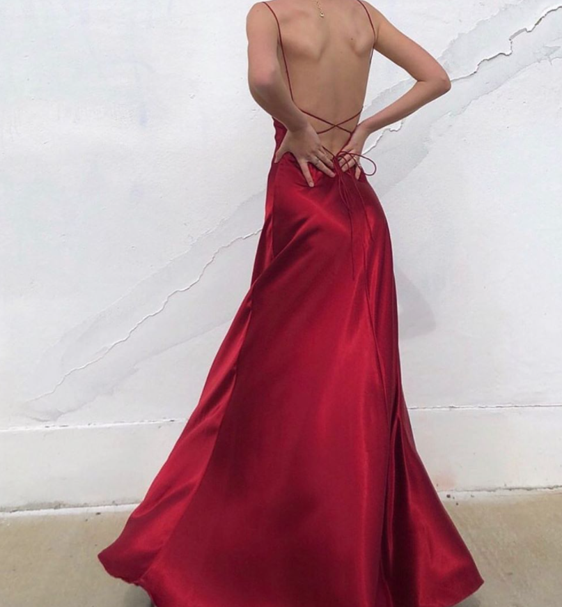 Spaghetti Straps Backless Long Evening Dress Sexy Prom Dress
