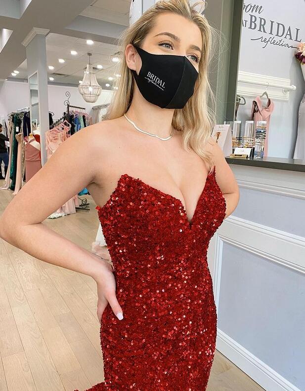 Burgundy Mermaid Strapless Sequins Long Prom Evening Dresses