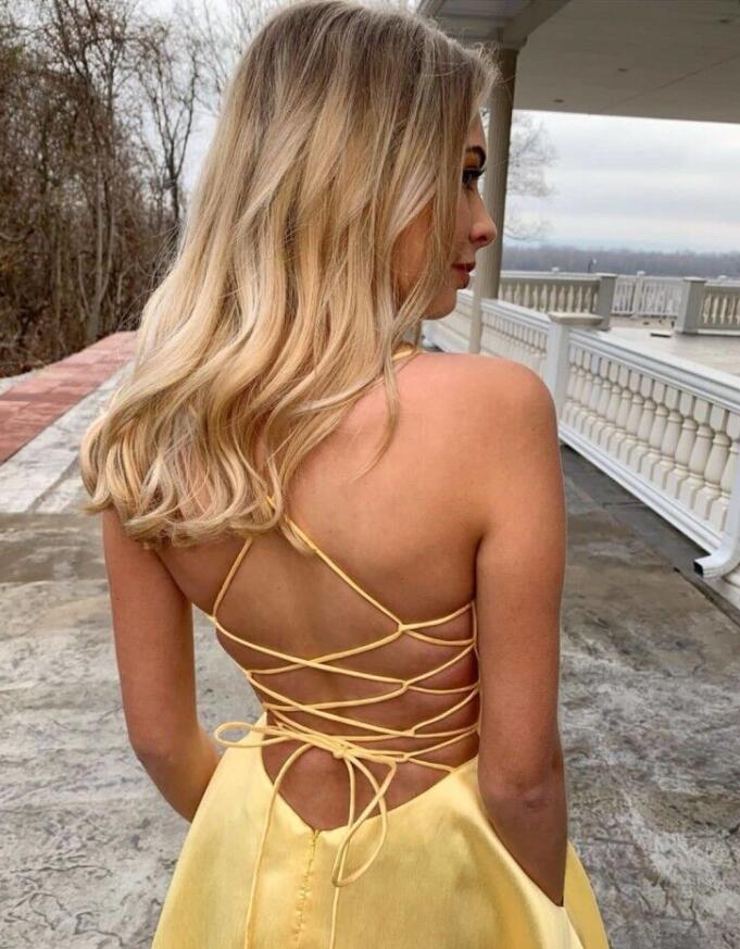 Simple A-line Backless Yellow Stain Prom Dress