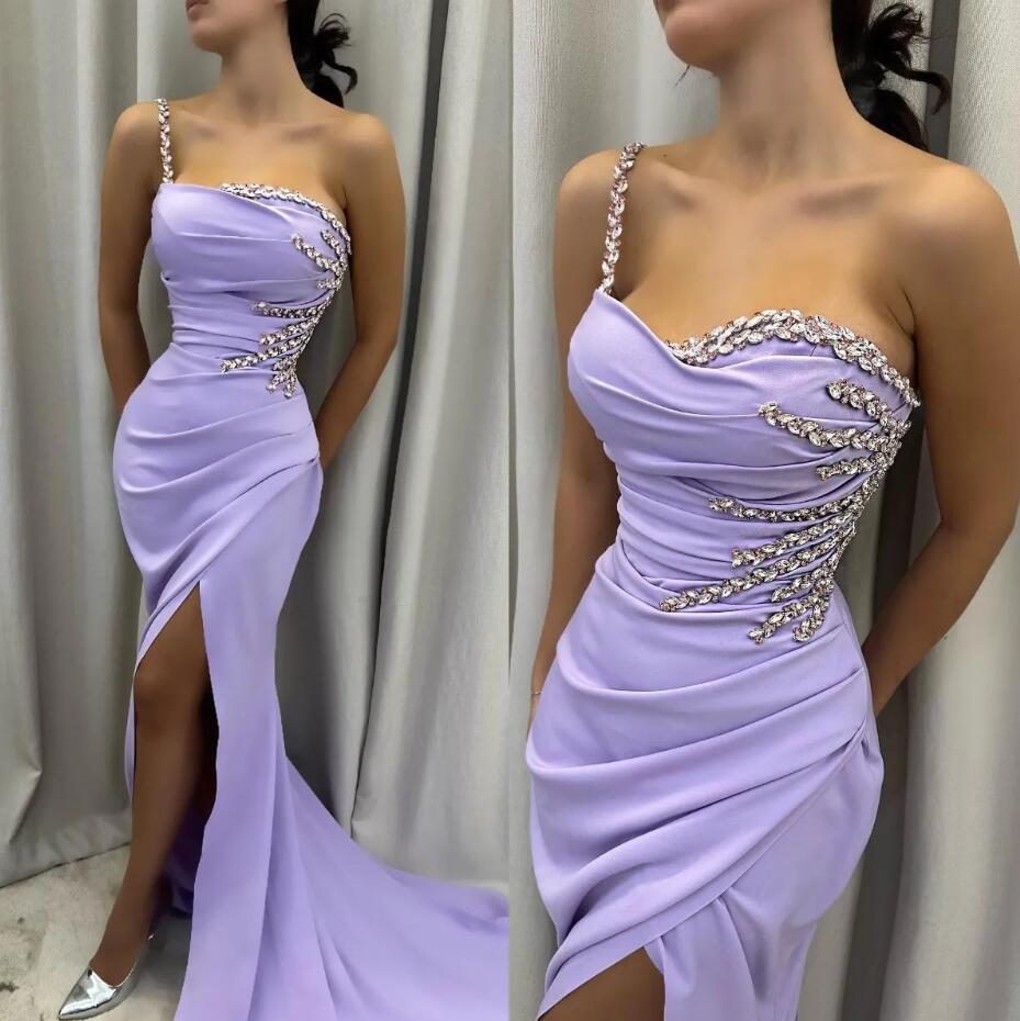 Mermaid Spaghetti Lavender Beads Split Evening Dress