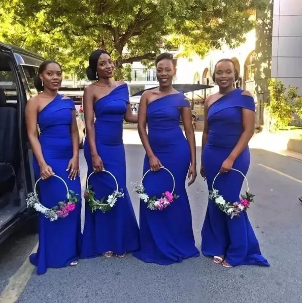 One Shoulder Royal Blue Mermaid Bridesmaid Dresses Satin Wedding Guest Gowns