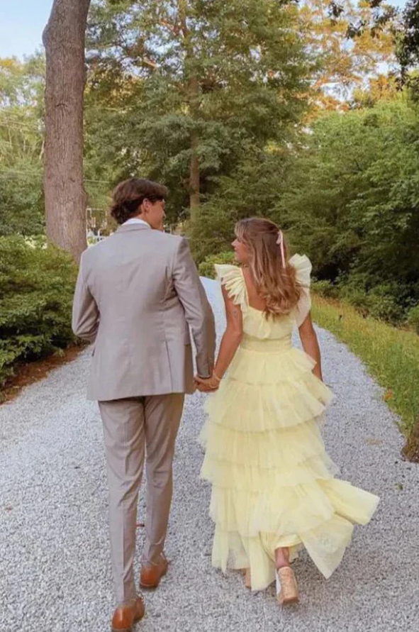 A Line Yellow Multi Layered Tulle Prom Dresses