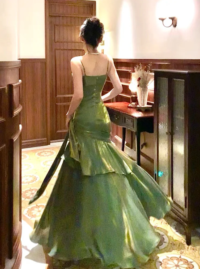 Mermaid Spaghetti Straps Olive Green Long Prom Dresses