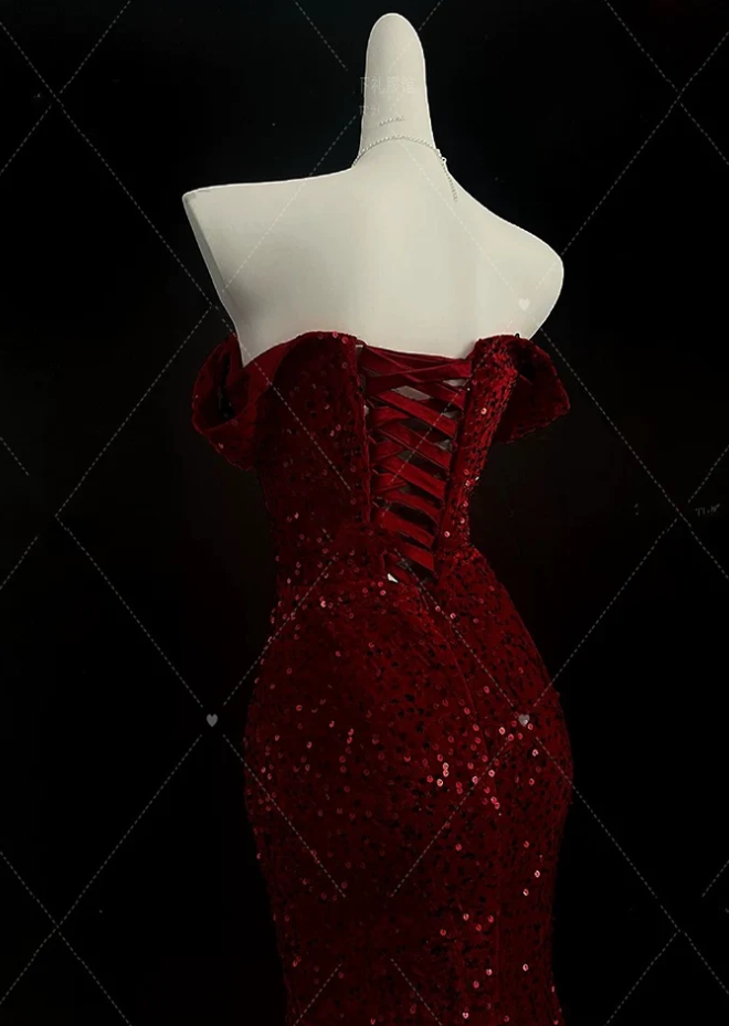 Classy Mermaid Sweetheart Red Slit Sequin Evening Dress