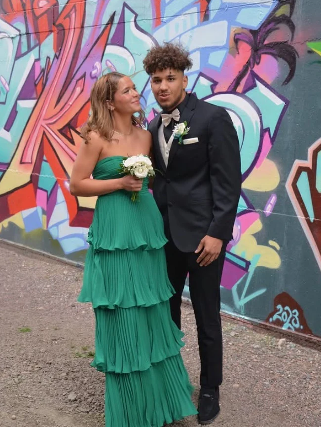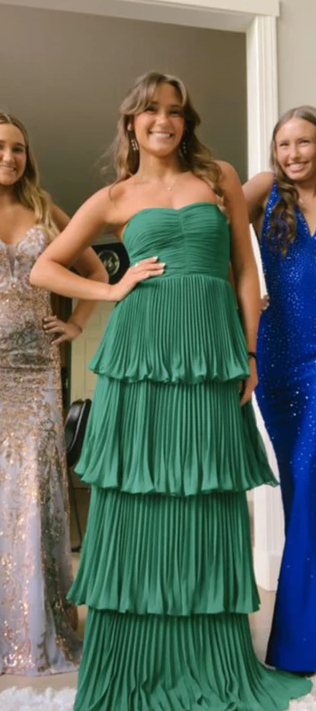 Strapless A-Line Green Tiered Chiffon Long Party Dress