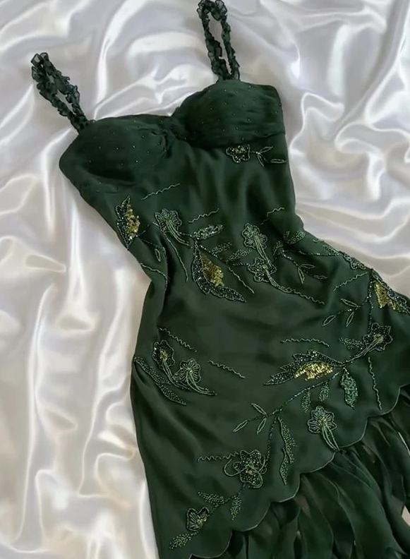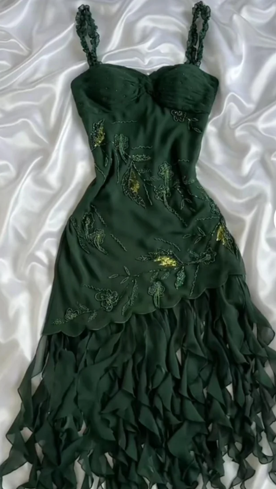 Beautiful Dark Green Chiffon Ruffle Prom Dress Formal Evening Dress