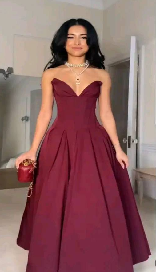 A Line Sweetheart V-Neck Burgundy Formal Prom Dress